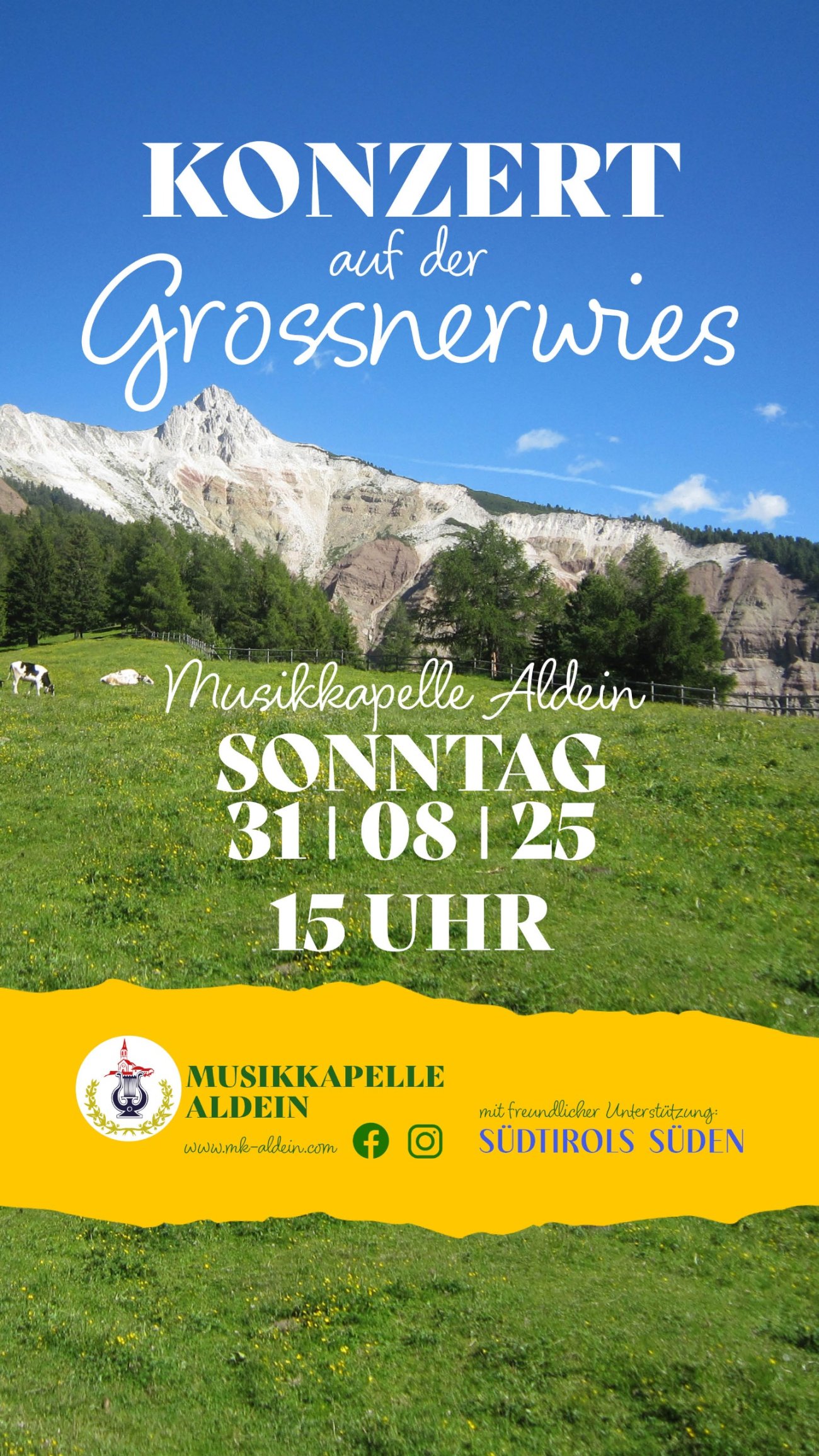 Das Konzert wird in Zusammenarbeit mit dem Tourismusverein Aldein, Radein, Jochgrimm und Südtirols Süden organisiert.